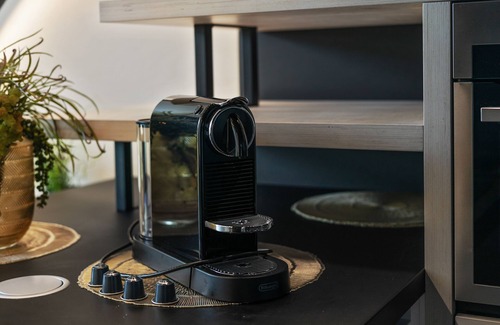 Die Küche ist mit einem Herd, Backofen, Geschirrspüler, Kühl-/Gefrierschrank, Wasserkocher, Kaffeemaschine und Toaster ausgestattet.