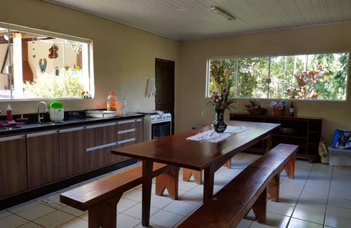 4 bedrooms and 1 suite, with 2 internal and 2 external bathrooms, large living room with fireplace and TV, pool 8 x 4m, barbecue with wood oven to bake pizza, lawn soccer field, chapel and homemade.
