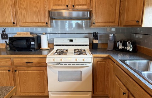 This cabin is beautifully decorated and has so much character, with vaulted ceilings and knotty pine throughout. With a spacious, open kitchen and full bath, the home accommodates 6 people.