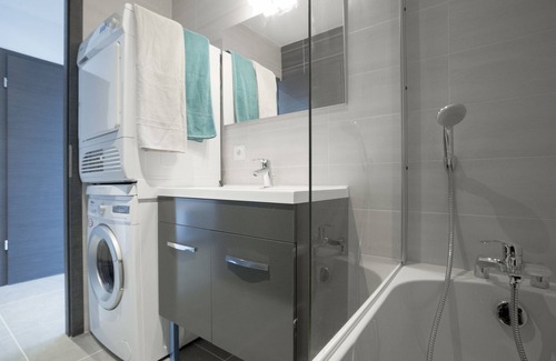 The living area has a flat-screen satellite TV and an equipped kitchen. This apartment has 2 bedrooms, 2 bathrooms with a hairdryer and a toilet. There is also a washing machine, tumble dryer and bicycle storage.