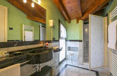 • 10 external steps • Part of the Montelago Residence Hotel • 24-hour on-site reception • Access to a Himalayan Salt room • On-site payable extras include bike hire, hotel breakfast (€8 per person), extra cleaning (€20) • Pets allowed to stay (€20) • Shared garden