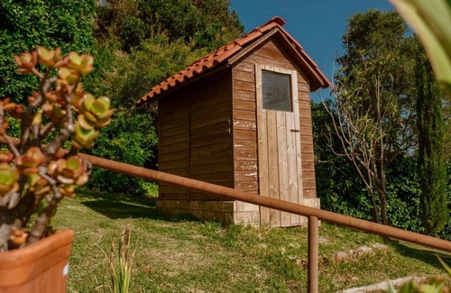 In front of the house there is a patio with an area with sofas under a pergola and on a lower terrace is the pool and another pergola next to a small kitchen with a fridge and toilet. All surrounded by a large garden with grass. Smoking is prohibited inside the house for this purpose there is a large outdoor area.