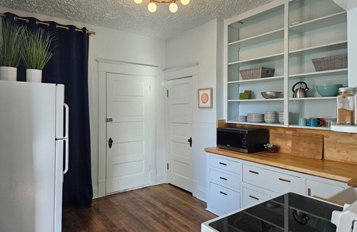 A stylish place in Lewistown, with a great kitchen! Available on a monthly basis. This main level apartment is recently updated and super convenient. Offering a bedroom for 2 and a sofa bed for additional arrangements. Enjoy a SmartTV w/apps and organic, non-toxic supplies, wifi, street parking, a common area washer/dryer, and lots of extra perks! Downtown restaurants and nightlife out your front door and within walking distance.