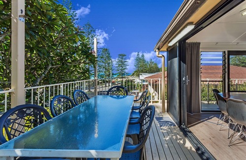 This 4 bedroom home is ideal for a family getaway. It has ocean views and is only a minutes walk to beach. There is a new kitchen with microwave and dishwasher. It has a large open plan living and dining area, with air conditioner and ceiling or pedestal fans in each room, big bright bathroom with bath. There is a 2nd toilet & shower downstairs. Deck with outdoor seating, table tennis, Large TV, video, DVD, stereo/cd, gas BBQ, reverse-cycle air conditioning, fenced yard.