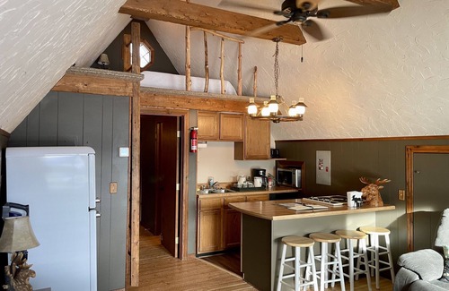 The Moose Cabin sleeps 6 and offers a fun and cozy atmosphere with that rustic cabin charm. A queen size bed, cotton-soft bedding in the main floor bedroom is perfect to snuggle into after a day of hiking or exploring. There is also a queen size sofa sleeper, and queen bed in the Loft. The property has ample water supply which makes for a nice, hot shower at the end of the day. The kitchen comes well-equipped, and there is a gas grill on the covered deck. For relaxing at the cabin and eating in, there is a local, country grocery store in Fishtail 10 minutes from the cabin. There is a larger grocery store in Columbus about 30 minutes away.