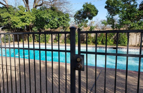 Fantastic guest house in back of property w/pool & park access! King bed plus double sleeper sofa. 15 min or less to everything in the Ft Worth area including DFW Airport, AT&T Cowboys Stadium, Rangers Field, Stockyards, downtown, museums, Six Flags, Hurricane Harbor, zoo, NE Mall, Hurricane Harbor, NRH2O, convention center, and NE Tarrant College. All linens, soaps, kitchen supplies provided. WiFi. Portable cable tv rolls to living room or bedroom. Washer/Dryer. Iron. Hair dryer. Just need YOU!