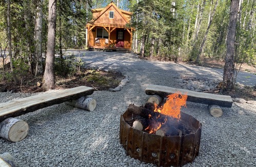 Peaceful family cabin minutes from Main St. Wasilla. Perfect place to base your Alaskan adventure. True cabin style living with two queen beds in the loft and the most supportive pullout sofa bed you've ever slept on sofa bed on the main floor. Close to Wasilla Airport, Menard Sports Center and Parks Hwy, perfect for all the tournaments and shows at the Menard. Great place for couples, solo adventurers, business travelers, and families. We also have 4 other adjacent cabins on other listings for group stays. Shared firepits are available during the summer on a first come basis, firewood is not provided.
