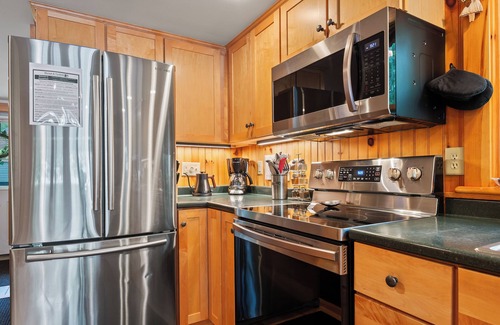 MooseHoek is a charming, intimate cabin perched just about 100 ft from the water's edge on Mooselookmeguntic Lake in Rangeley, Maine. Accommodating up to four guests in its queen-bedroom and twin-loft setup, this retreat is ideal for couples or small families seeking a peaceful escape in the mountains. The open-concept living and dining space, full kitchen with dishwasher, washer/dryer, and smart TV ensure you enjoy all the comforts of home while immersed in a tranquil lakefront setting.