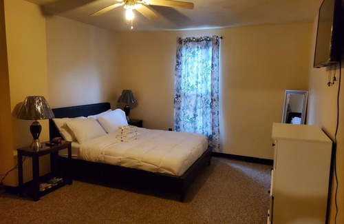 Stay comfortably in Johnstown at this 2-bedroom townhome. The cozy space features 2 queen beds, a bathroom with a bathtub, and convenient amenities like WiFi and a washing machine. Guests can relax in this adorable and cool retreat, perfect for a relaxing getaway. Enjoy your time in Johnstown at our townhome.
