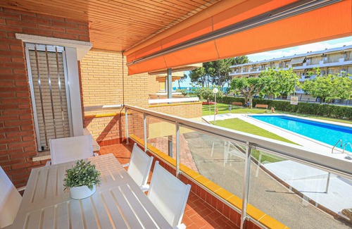 Fantastic apartment in front line of sea in Cambrils with direct access to the beach. Mas d 'en Gran is situated opposite the promenade between Cambrils and Salou in the area of Vilafortuny. The apartment has two bedrooms, living room, kitchen with washing machine, fridge, oven and microwave. It also offers a full bathroom and an elevator. The apartment is located 100 m from supermarkets, shops, gas station, mini-golf, squash, paddle and a hotel with free Buffet for external service. A quiet and family complexe.Well-connected area only 50 meters from the bus stop in the direction of PortAventura, Tarragona, Reus (11k very commercial) Barcelona and Cambrils. This is undoubtedly the ideal accommodation to enjoy some excellent holiday in couple or in family in an apartment with great terrace, views the pool and to the sea.Enjoy of a great stay!