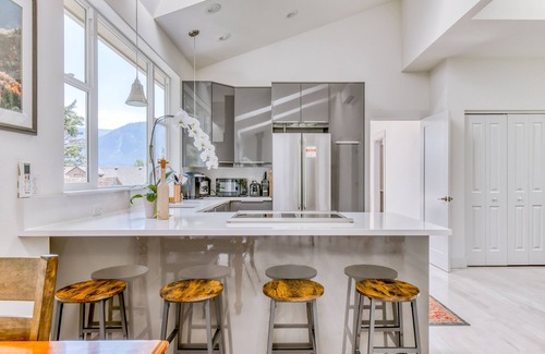 Come home to this modern house with spectacular views of the Columbia River Gorge. Perfect for groups that want a little more room to spread out, this scenic retreat is comprised of a separate home and studio, each furnished with standalone home essentials and fully renovated for modern living. On summer days, you'll be busy searching for waterfalls, kayaking, paddling, fishing, hiking, or exploring nearby state parks. Winters are best spent enjoying a variety of snow sports on Mt. Hood, just 60 miles away. Take a trip into central Stevenson, within a mile, there are many restaurants, breweries, cafés, and shops.