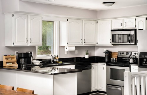 We’ve got you covered with things like wi-fi, smart-TVs, computer monitor, iron & ironing board, pack 'n play & sheets, high chair, laundry detergent, blow dryers, body wash, shampoo & conditioner, hand soap, lotion, towels & washcloths, linens, luggage racks, feminine hygiene products, toilet paper, tissues, dish soap & dishwasher pods, coffee & tea, creamer & sugar, salt & pepper, olive oil, cooking utensils, pots & pans, coffee maker, blender, tea kettle, paper towels, dish sponge, trash bags, and more.