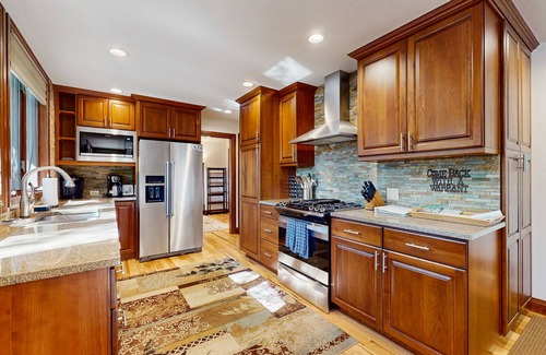 This two-story home can comfortably accommodate everyone in three suite-style bedrooms. Upstairs, the primary bedroom beckons with a king-size bed, a gas fireplace, and a 60-inch flatscreen TV. A quiet office area provides a comfortable place to work, and the en-suite primary bathroom is appointed with a walk-in shower and a granite vanity. Find the second bedroom on the first floor with a queen-size bed and an en-suite bathroom with a walk-in shower. The third guest room is located on the second floor with a queen-size bed, a 60-inch TV, and an en-suite bathroom with a tub/shower combination.