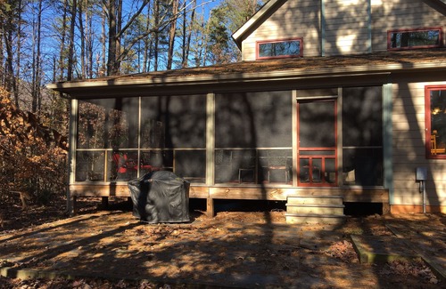 Ski up the mountain in the late fall, winter and early spring . Enjoy golf, visiting wineries and breweries in the valley . The Tranquility Retreat is located at the base of the mountain in Stoney Creek, the sister community to the Wintergreen Resort. This house offers accommodations for multiple families on a wooded acre of property. This beautifully furnished home has five bedrooms with 4 and a half baths. Three owner suites offer king sized beds with private baths. A fourth upstairs bedroom has a queen sized bed and shares a bath with a fifth bedroom with a pair of twin bunk-beds. All of the rooms have flat screen cable TV, wireless/wired internet service. There is a land line phone in the home. In addition to the many indoor spaces, there are plenty of outdoor spaces. You will love the large screened deck on the back of the house, the spacious patio and the hot tub.