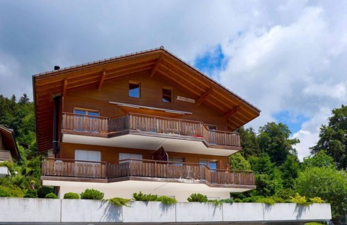 Beatenberg 12 km from Interlaken: Modern chalet "Sunnehuus", surrounded by meadows. In the district of Matte, on the outskirts, 1.5 km from the centre of Beatenberg, in a quiet, sunny position on a slope, in a cul-de-sac, south-east facing position. In the house: storage room for skis, central heating system. Narrow motor access to 800 m from the house. In Winter: please take snow chains. Width of access road: 300 cm. Parking. Grocery 500 m, restaurant 200 m, bus stop, outdoor swimming pool 12 km, indoor swimming pool 2 km. Golf course (18 hole) 12 km, sailing school 12 km, minigolf 700 m, walking paths from the house 10 m, cable car 2 km, cross country ski track 3 km. Nearby attractions: Beatushöhlen, Interlaken, Jungfraujoch. Well-known ski regions can easily be reached: Jungfrau-Region 25 km, Niederhorn 2 km. Well-known lakes can easily be reached: Thuner- und Brienzersee. Hiking paths: Niederhorn, Hohgant, Jakobsweg. Please note: car recommended. Ski bus (free of charge).