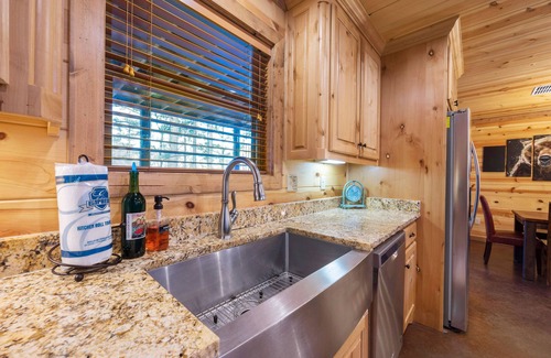 Come on in and enjoy this beautiful 5 bedroom 4 bathroom cabin complete with a open kitchen with plenty of counter space, fully equipped kitchen, stainless steel appliances, with cookware and dishes provided. The Dining table comfortably seats ten, with addition seating at the beautiful stone island with seating for four to entertain your guests and family while cooking.