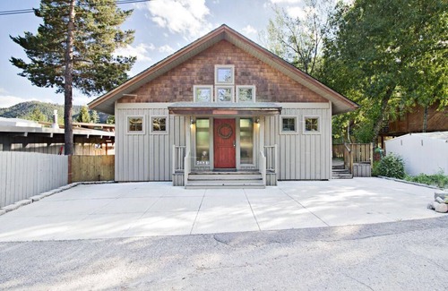 Walk to the river to fish in the morning, relax in the light-filled great room with a view of Bald Mountain. Sleeps 4 in the house, add 1-2 more if you're adventurous & use the Sheep Camp. Our fully-stocked kitchen will please the home chef. Working remotely? Enjoy 3 desks & multiple flexible work areas. Our recently-renovated, comfortable home is minutes from downtown, Sun Valley Lodge, golf, hiking, and mid-way between the two Sun Valley Warm Springs & River Run ski lodges. Bike, walk, bus. Two on-site parking spots, with room to park an RV in the adjacent dead end (summers only). Master Bedroom has a king-sized bed and en suite full bathroom. Second bedroom has two twin beds that convert into a comfortable king bed. Third bedroom is the Sheep's Camp. Fully-insulated, it is accessed via outside stairs to the backyard, and shares the the second bathroom. Half bath is upstairs adjacent to the living/dining area. Please note: ALL the bedrooms require stair access. Hot tub, large patio with dining set, lounge chair, and wild lawn area in backyard. Upstairs balcony off the Great Room has adirondack chairs, and DCS gas BBQ.