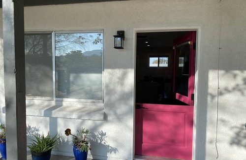 Location, location, location! This Joshua Tree Village Bungalow is perfectly located with easy access to the National Park, a short 4.5-mile drive. It is within walking distance to downtown shops and restaurants, Crossroads Café, Natural Sisters Café, Country Kitchen and the world-famous Joshua Tree Saloon. The Saloon is known for its local flavor, offering great food, great fun, live music, dancing and the perfect place to mix with the locals. This Bungalow is centrally located to venues and events. The National Park visitor center is a few blocks away. The Coyote Hole Canyon trail head is steps away from this quaint and comfortable 1 bedroom duplex .