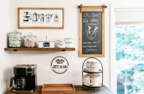 Each morning, help yourself to our complimentary, fully stocked coffee bar. Complete with everything you need to make YOUR perfect cup of joe, we're proud to offer a Keurig, drip coffee, french press, pour over coffee, tea kettle, and coffee grinder. We also keep the bar stocked with K-cups, tea bags, hot chocolate, sugar, Truvia, half and half, and cookies.