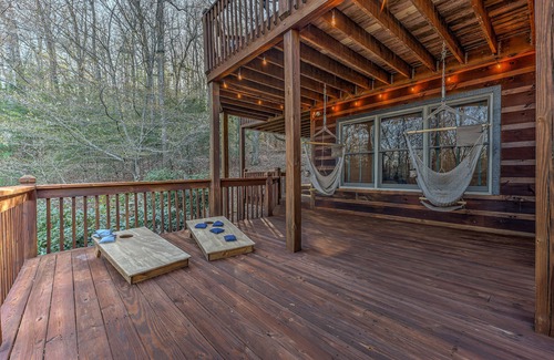 Enjoy gorgeous mountain views from a two-story deck, a treehouse-like screened porch with a gas fire pit, a rocking chair front porch overlooking the Chattahoochee National Forest, fully equipped kitchen, a new (2025) Weber gas grill, a Nordic Sport Jet hot tub, wood burning fireplace, games, and music.