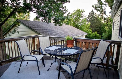 This elegant & comfortable home is a relaxing getaway near walking trails, shops, restaurants, Old Town Lafayette, and public transport. Our home is full of sunlight, tastefully renovated & decorated in a minimalist mid century modern style. Large fenced & pet friendly backyard with elevated deck & 6 person hot tub. Free Wifi, full kitchen, full size washer/dryer, driveway and off street parking. (Note: not recmd for those highly allergic to kitties)