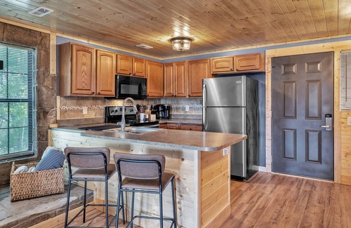 Check out unit 3, 4 or 5 if your dates are not available! Enjoy beautiful sunrises and sunsets where the skies have painted a range of rich colors. The covered balcony is exactly where you want to be in order to enjoy this tranquil experience, becoming the perfect setting to savor your morning coffee overlooking the creek or evening nightcap. The open floor plan invites you to the generous living spaces that have been appointed with a cozy electric fireplace, a brand new 75-inch smart flat screen with cable, plus a Queen pull-out couch that can sleep two or three. There's plenty of counter-prep space in the kitchen, which is fully equipped with everything you would need to cook such as different sizes of pots/pans, a toaster, oven/stove, microwave, utensils, plates, and glasses. The kitchen also has a breakfast bar with seating that could also be used as a workspace with a laptop, or head over the farmhouse-style dining table with chair and bench seating. With free WIFI throughout the unit, you will be able to log in from anywhere, whether working, connecting, uploading, or gaming. If you are planning on getting a little dirty on the hiking trails, that’s not a problem since the unit has a washer and dryer. Of course, at the end of the day, there's nothing like settling into the comfy bedroom, meanwhile, the full bathroom is streamlined for your daily routine with all you could need, including a convenient tub/shower combo. If you are looking to enjoy some time in the amazing Great Smoky Mountains, this is the place for you!!