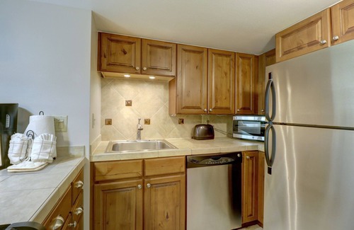 Get away from it all in this luxurious condo! Enjoy view of the West Lake the large living room windows. Condo sleeps up to 4 people and has 2 full bathrooms. Mountain Plaza is right next to the American Eagle chairlift in Center Village, can't beat this Center Village location! Quiet corner location in Mountain Plaza. The Living Room has a Queen Sleeper Sofa, a wood burning fireplace, and a flat screen TV. The newly remodeled kitchen is fully stocked with everything you need. This spacious kitchen has granite counter tops and stainless steel appliances. The dinning room table has seating for 4 and there are 4 addition seats at the breakfast bar. The bedroom has 1 King Bed and flat screen TV. There is an en suite bathroom. There is garage parking for 1 vehicle. Clearance is 6'7". An additional vehicle can park in the Lower Ten Mile Lot off Guller Road after the roundabout. Overflow vehicles can park in the North Alpine Lot at the entrance of Copper Mountain for an additional charge in the winter, summer is free. Mountain Plaza has a shared hot tub. There is a private ski locker for use during your stay. Laundry facilities are available as well. There are many shops and restaurants nearby.