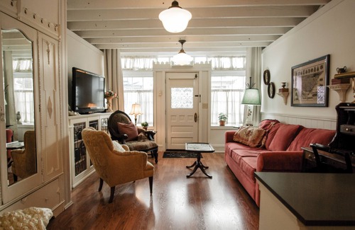 Mrs Jensen's Bakery Suite was once a neighborhood bakery in this historic district Victorian back in the 1920s. It has been renovated into a cozy and adorable 1920's style cottage suite with a bright, airy parlor, quaint kitchenette, private bathroom, and its own front patio with bistro table and flower boxes. It even has a roof top deck! Your stay includes great coffee, tea, welcome pastries, filtered water, cozy robes and slippers, fluffy Turkish towels, soaps and toiletries.