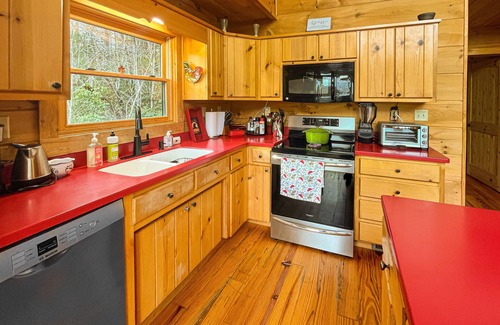 Mtn-view home close to parks with private sauna, decks, wood stove, grill, W/D is located in Zirconia. Mtn-view home close to parks with private sauna, decks, wood stove, grill, W/D provides accommodation, featuring Barbecue/Outdoor Cooking, Balcony/Terrace, Accessibility, among other amenities. This House features Barbecue/Outdoor Cooking, Balcony/Terrace, Accessibility, to make your stay a comfortable one.