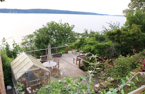 Private, Secluded, Amazing 155 degree sound and mountain view 2 bedroom apartment with separate entrance. Be in the city, but feel like you are away from it all. Secluded at the end of a private road you will find peace and quiet in a newly remodeled 1200 sq. ft. apartment in a three story home. View of the Olympic mountains, Whidbey Island, and Ferries. Large private deck with BBQ and fire pit are available for use. Quiet large yard overlooking the sound is right outside your front door. Easy access to downtown, freeways, and Boeing. Full kitchen with custom cabinetry. Half bath with spa style "rain" shower. Two bedrooms with queen size beds. Full dining and living room. If you are looking for seclusion and comfort, yet easy access to everything, this is your spot. Apartment is at the bottom of a Non-ADA compliant ramp. No smoking, and no pets.