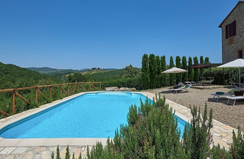 Mulinaccio di Badia is a charming holiday home set in the gentle hills of the Chianti Classico, surrounded by vineyards and olive trees. Its peaceful rural setting and a beautiful pool with sweeping views of the Tuscan landscape make it the perfect retreat for a relaxing holiday with family or friends.