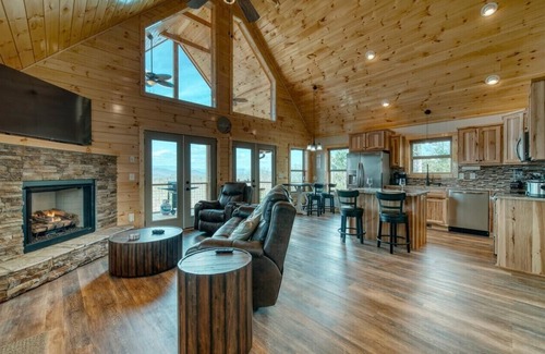Take it easy at this unique and tranquil getaway. My Mystic Mountain is all about the great outdoors and long range views! This home has not one but 2 gas fireplaces outside on the 2 decks along with a large flat screen TV and gas grill to make your time at the cabin perfect in every way.