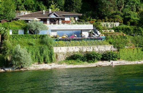 Wonderful Villa built in the 70s with all modern facilities, just in front of the Lake Maggiore, with amazing view of the Lake and mountains, it has a wonderful pool, private beach, by climbing 13 steps from the villa garden, and boat access.