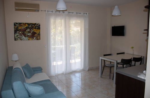 Erato Apartment Kefalonia is on the 1st floor and is a two room apartment of 45 square meters with all the comforts and decorated with taste and finesse offering discreet luxury for a pleasant stay. It features a bedroom with double bed, a sitting area with a sofa bed, a bathroom with a shower, fully equipped kitchenette and a private balcony. Staying in “Myrtos Cottages” is an excellent choice as you can enjoy the island’s hospitality in a frugal, calm and idyllic environment at the same time.