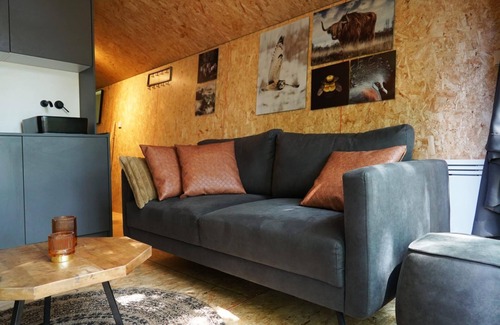Solo Retreat 4 is a cosy chalet that brings you closer to nature and yourself. This detached house is on the ground floor and suitable for up to 4 people. The common room has a cosy sitting area with television, a dining table with chairs and a modern kitchen with an induction cooker, microwave and filter coffee machine. There are 2 sleeping areas, both with a double bed. The bathroom has a toilet, sink and shower cabin. The chalet is adjacent to a terrace with garden furniture. You can park 1 car near Solo Retreat 4 and free Wi-Fi is available.