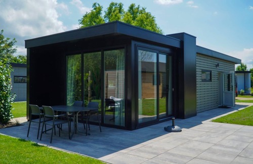 The Cube la Mer has a modern and robust exterior with a warm interior. The detached chalet is on one level and suitable for 4 persons. In the living room you have a sitting area with television, a dining area and a kitchen, which includes a microwave, a dishwasher and a coffee machine. There are 2 bedrooms, each with 2 single beds. The bathroom has a shower, sink and toilet. From the living room you can go to the private terrace with garden furniture. Furthermore, the accommodation has a sauna and hot tub. The hot tub is located next to the house in the garden, and there is also a shed where the sauna and a luxury shower are located.This property is therefore ideal for relaxing.