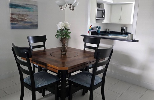 The Resort amenities are a heated pool, tennis courts, shuffleboard courts, outdoor BBQ ( charcoal) area. The owners have included kitchenware, linens, towels ( beach and bath). There are also beach chairs, racquets and extra patio chairs in the lani storage. I have also supplied dish soap, dishwasher tabs, laundry detergent, softener, dryer sheets, these are all products used for condo cleaning and guest are free to use. There is no extra charge for cleaning. Parking is located right out front and the space is marked 5-204. Come relax and enjoy.