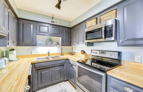 KITCHEN: Fully equipped, cooking basics, Keurig coffee maker, drip coffee maker, toaster, blender, crock pot, wooden cabinets, dishwasher, 2-person breakfast bar