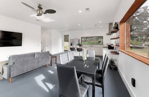 Be ensconced in nature while remaining in the city. Northwest Austin is surrounded by nature as it begins the hill country. This little cottage boasts spacious sleeping quarters with large windows that invite light in. It is surrounded by nature and a creek to walk along. One bathroom has a tub while the other has a shower. The whole group can enjoy a picnic or bbq in our outdoor space. With a car, access to everything is easy from this centrally located place.
