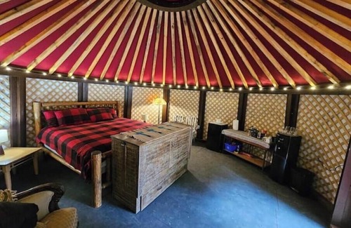 Get away from it all, glamping has never been so fun. Enjoy this cozy rustic style yurt on a 40 acre property nestled amoung the cedar trees. Hand fed bison on your doorstep, baby goats, ostriches, horses, chickens and Alpacas. Wonder around, enjoy the views, meet the animals and let your worries melt away.
