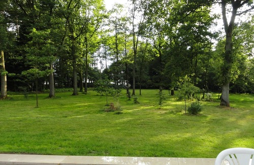 The holiday house has a living space of approx. 140 sqm. The rooms are flooded with light thanks to the large windows and double-skinned doors. When the weather is fine, open it and move it outside to the large terrace, which is about ten meters long and about three meters wide on the west side of the house. So you have sunshine from the early noon hours. The smell of spring, summer and autumn then flows into the house. From the living room and from the kitchen you can enjoy the view of the park-like property. Your view then falls on a large green area with old trees, especially on 100 years old oaks. From there you can enjoy the often beautiful sunsets in red to violet tones or the glittering winter days with the makellosen snow surfaces. Look north, there is a large greenhouse with herbs, tomatoes, cucumbers and much more. To the south lies the deciduous and deciduous forest, which changes its face according to the season.