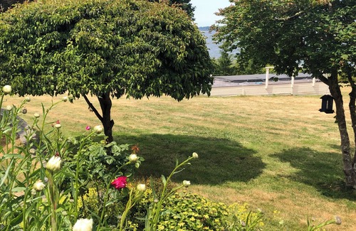 There is an expansive waterfront lawn with fruit trees, flowers, swing and slide for children at the backyard. Events may be available upon request. Pit fires may be available . Quiet time is between 10pm and 8am.