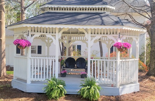 - enjoy the gazeboo lights in the evening while rocking in our vintage glider.