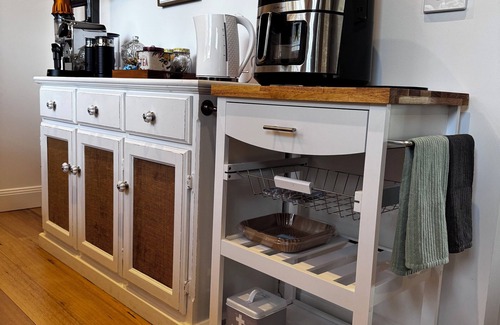 With an open floor plan, well-appointed and equipped kitchen, modern bathroom, comfy queen size bed, wood fire to keep you toasty warm in winter and to keep you cool in the warmer months, a ceiling fan & refreshing easterly breeze that blows in most afternoons.