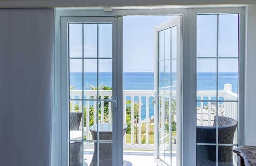 The villa itself has three large bedrooms each with ocean views and the Master en-suite bathroom. The three bedrooms are upstairs. All bedrooms have split air-conditioning and HD LED televisions. The villa is beautifully decorated with a mix of elegant new pieces. All bathrooms, which are finished in natural stone, marble or granite, have walk in showers. Relax in the large master suite complete with a luxurious bathroom with shower enclosure and spa-like soaking tub while watching the sunset. This suite opens unto a spacious upstairs patio where one can enjoy the breathtaking sunrise in the morning or have afternoon tea while viewing the birds of the Little Bay Marine Park. Experience the romantic Beach where we you can grill your favourite meal right on the beach while you dine by candlelight surrounded by tiki torches.