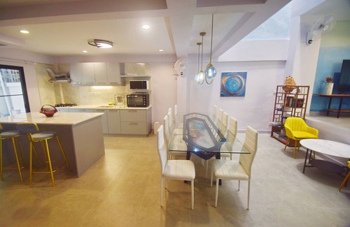 Just 2 minutes’ walk from Hua Hin's best beach (170 metres), this modern, stylish accommodation Neverland Hua Hin is designed for families and groups of 6 - 13 people. This three floor split-level townhouse has been renovated in unique Neverland story-themed luxury, offering 4 bedrooms, 4.5 bathrooms, children's bunk beds, 2 large outdoor balconies and full home cooking facilities. It offers ample space for a relaxing beach holiday. The communal swimming pool is directly in front of the house.