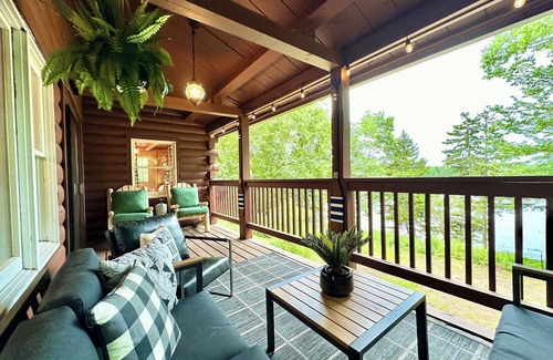 Our Log Cabin Offers 1,300 Square Feet Of Exceptional Accommodations and Meticulously Designed Interior w/ 2 Outdoor Decks, Gas Firepit/Grill and Outdoor Dining Overlooking The Bay!