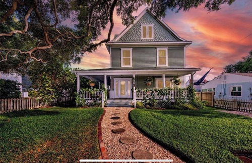 The complete third story of this home is called The Houston Master Suite named after the current owners. The largest of the four total bedrooms in our historic home. The home is one block from picturesque downtown Dunedin. You have an ensuite master bedroom with a king bed and kitchenette, a sitting room with sleeper sofa as a second sleeping space/ office area.