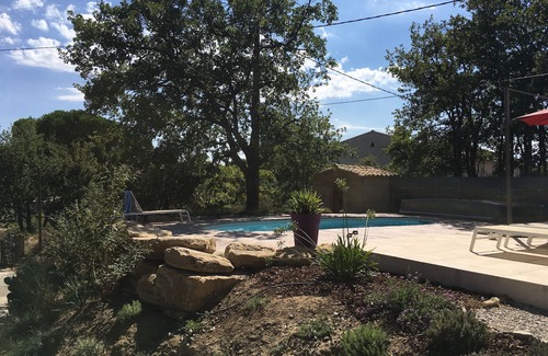 Private pool 7mx3m 1.5m deep flat bottom. Telescopic shelter to bathe in warmer water (up to 10 degrees more) from spring to fall.