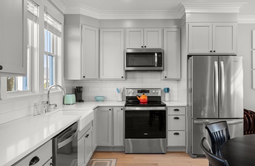 Completed in 2023, this dog-friendly townhome features ocean views, extremely fast wifi, a retro arcade pinball machine, and close proximity to ALL of Town Center’s wonderful offerings. An abundance of windows fill the townhome with natural light, and the Northwest-facing windows offer scenic views of the Pacific Ocean. Open the windows and listen to the peaceful ocean waves as well all of the activity at street level thanks to this townhome’s optimal location in the heart of Seabrook.